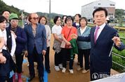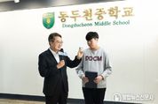불탑뉴스신문사 차복원 기자 | 김동연 경기도지사가 16일 동두천중학교를 찾아 노점 할머니께 비상금을 건넨 선행으로 화제가 된 옥현일 군에게 표창을 수여했다. 김 지사는 학교 현관에서 학생회와 함께 ‘함께라서 더 빛나는 우리’ 생명존중 캠페인에 동참하고, 이어 1층 로비에서 옥현일 군에게 표창장을 전달했다. 옥현일 군은 지난 7월 폭염 속에서 노점상 할머니에게 비상금 3만 원을 건네고 콩 한 봉지를 받은 사연이 알려지며 주목받았다. SNS에 게시된 영상은 인근 공방 운영자가 촬영한 것으로, 현일 군이 남모르게 베푼 선행이 담겨 3일 만에 206만 조회수, ‘좋아요’ 약 7만, 댓글 2,500개 이상을 기록했다. 당시 현일 군은 “더운 날씨에 할머니가 물건을 빨리 팔고 쉬셨으면 좋겠다는 마음이었다”고 말해 많은 시민에게 감동을 줬다. 김동연 지사는 이날 인사말을 통해 “옥현일 군이 도운 할머니가 우리의 어머니, 할머니”라며 “수많은 옥현일 군이 동두천중에 있다고 본다. 그것이 사람 사는 세상”이라고 말했다. 이어 “여러분이 그런 따뜻한 마음을 갖길 바란다. 당장은 남을 위한 배려 같지만 길