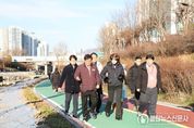 불탑뉴스신문사 차복원 기자 | 박강수 마포구청장은 12월 22일 오후 3시, 성산천 일대에서 구 부서장들과 함께 지난 2일 정비를 마친 성산천을 둘러보며 변화된 모습을 살폈다. 이번 현장 방문은 성산천 환경개선공사 및 생태경관 개선사업 완료에 따른 후속 점검 차원에서 마련됐다. 이날 라운딩은 방울내나들목에서 출발해 성산천 정비구간과 월드컵천을 거쳐 중리천교 하부 벽화 구간, 월드컵천 경관폭포 조성 구간을 지나 다시 성산천으로 돌아오는 동선으로 진행됐다. 박강수 마포구청장은 하천을 따라 이동하며 산책로와 자전거도로 상태, 보행·주행 안전 요소, 하천 둔치에 식재한 10종의 야생화의 상태 등을 꼼꼼히 살폈다. 최근 구는 사천교부터 한강 합류부까지 약 2.4km 구간을 대상으로 환경개선사업을 추진해, 도심 속 노후 하천을 보다 안전하고 자연친화적인 공간으로 재정비했다. 하천 내 준설 작업을 통해 수해 위험 요소를 해소하고, 산책로와 자전거도로를 재포장해 미끄럼 방지 기능을 강화했으며, 계단과 난간 등 노후 시설물도 전면 정비했다. 박강수 마포구청장은 최근 정비가 완료된 성산천
