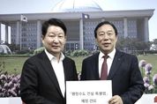 불탑뉴스신문사 차복원 기자 | 해남군은 내년도 정부예산안에 대한 국회 심의가 본격화됨에 따라 지난 13일 국회를 방문해 주요 현안 사업의 국비 반영을 위한 총력전을 펼쳤다. 명현관 군수와 실무담당 공직자들은 김병기 더불어민주당 원내대표과 한병도 예결위원장, 어기구 농해수위원장, 신정훈 행안위원장, 조계원 의원을 비롯해 지역구 국회의원인 박지원 의원과 해남군 출신 기재부 임기근 차관을 잇따라 면담했다. 이 자리에서 해남군이 추진하고 있는 녹색융합 클러스터 조성 사업의 전액 국비 반영과 함께 국가사업으로 추진을 적극 건의했다. 녹색융합 클러스터는 태양광 사용 후 패널을 재처리·자원 순환하기 위한 연구개발과 실증 성능시험장, 시험·인증센터와 기업지원시설 등을 집적화한 시설로 총사업비 346억원이 투입될 예정이다. 명군수는“정부의 신재생에너지 확대 정책에 따라 향후 10년내에 태양광 패널의 자원순환이 큰 과제로 대두될 것으로 예상되는 만큼 녹색융합 클러스터의 신속한 설립과 안정적인 운영을 위해 국비 반영 확대가 반드시 필요하다”고 강조했다. 이와 함께 지하수 이용률이 높은 밭농업 단지 또는 지
