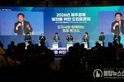 불탑뉴스신문사 송행임 기자 | 제주특별자치도가 제주경제의 회복 흐름을 지속가능한 성장으로 이어가기 위해 도민과 소통하고 공감을 구하는 토론회를 개최했다. 제주도와 제주상공회의소는 9일 오후 2시 한라컨벤션센터에서 ‘2026년 제주경제 발전을 위한 도민토론회’를 열었다. 토론회에는 상공인과 도민 등 250여 명이 참석했으며, 기조발표와 경제토크쇼, 도민과의 대화가 진행됐다. 양문석 제주상공회의소 회장은 개회사에서 “산업 환경 변화와 기후위기라는 국면 속에서 제주 경제의 구조와 방향을 근본적으로 재점검해야 하는 중요한 시점”이라며 "전문가들의 분석과 현장 목소리가 결합해 제주 경제의 미래 방향을 구체화하는 의미 있는 논의의 장이 되기를 기대한다”고 말했다. 오영훈 지사는 최근 제주경제 회복 흐름을 구체적으로 설명하며 “1월 관광객 전년 동기 대비 증가, 지난해 첫 수출 3억 달러 달성을 비롯해 최근 미국산 만다린 수입 우려에 대응한 수급조절 정책이 효과를 보이면서 가격이 상승해 안정세를 되찾았다”고 밝혔다. 그러나 “건설업 부진과 소상공인·자영업자의 어려움은 여전히 풀어야 할 과제”라며 “