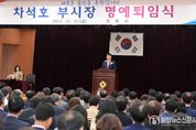 불탑뉴스신문사 송행임 기자 | 진주시는 10월 31일 오전 11시 시청 시민홀에서 ‘차석호 제24대 부시장 명예퇴임식’을 가졌다. 이날 퇴임식에는 조규일 진주시장을 비롯해 차석호 부시장의 가족과 친지, 시청 직원 등이 참석하여 차 부시장의 명예로운 퇴임을 축하하고, 새로운 출발을 응원했다. 또한 차 부시장의 퇴임기념 영상 상영과 감사패 전달 등을 통해 그동안의 공적을 기렸으며, 마지막으로 시청 직원과 일일이 악수를 하면서 석별의 정을 나눴다. 경남 함안 출신의 차석호 부시장은 지난 1992년 경남도 행정 7급 공채로 공직을 시작하여 함양군 부군수, 경남도 문화관광체육국장 등을 역임하여 경남도의 굵직한 현안을 성공적으로 이끌었고, 지난해 1월 진주시 부시장으로 부임하여 시정의 주요현안을 조율하며 시민 안전과 도시 발전에 헌신하며 33년의 공직생활을 마무리하게 됐다. 차석호 부시장은 퇴임사를 통해 “대학시절을 보낸 진주에서 공직의 마지막을 함께할 수 있어 영광으로 생각하며, 인생 2막은 고향 함안으로 돌아가 그동안 쌓은 지혜와 경험을 바탕으로 지역사회에 도움이 되는 길을 모색하겠다”는 의지를 밝혔다.
