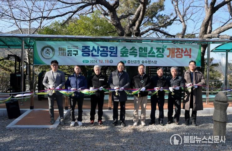 불탑뉴스신문사 송행임 기자 | 부산광역시 동구는 12월 19일 구청장, 구의원, 지역주민 등 100여 명이 참석한 가운데 증산공원 숲속헬스장 준공을 기념하는 개장식을 개최했다.