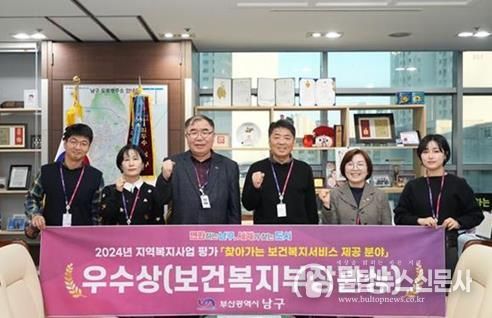불탑뉴스신문사 송행임 기자 | 부산광역시 남구는 보건복지부가 주관한 2024년 지역복지사업 평가 ‘찾아가는 보건복지서비스 제공’ 분야에서 전국 우수상을 받았다고 밝혔다.
