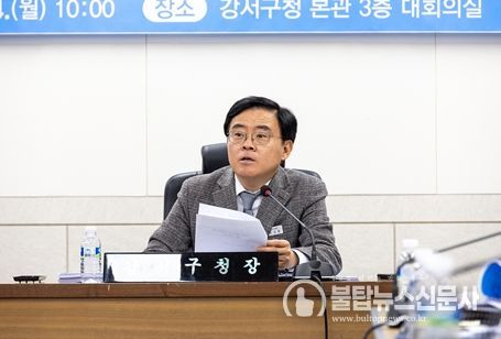 구는 24일 구청 대회의실에서 ‘강서구 공공디자인 진흥계획 수립 용역 최종보고회’를 개최했다. 이번 회의는 진교훈 구청장 주재로, 실국장과 관련 부서장이 참석한 가운데 진행됐다.