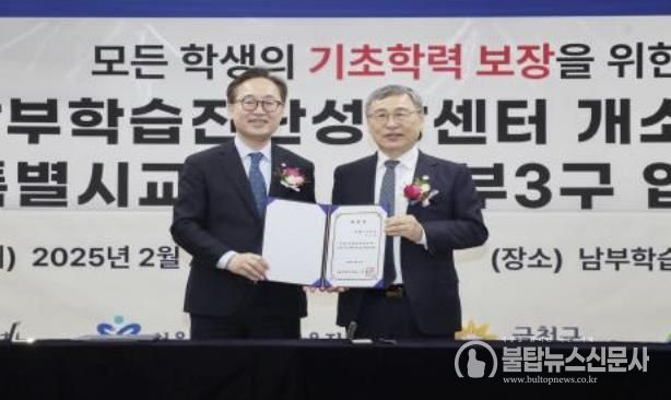 협약의 주요 내용은 ▲ 기초학력 보장을 위한 인적·물적 자원 공유 및 지원 ▲ 남부학습진단성장센터의 심층 진단 및 맞춤 지원 원스톱 체계 구축 ▲ 다양한 유형의 느린학습자를 위한 지원사업 추진 ▲ 늘봄학교 기반 조성 등에 관한 협력 사항 등이다.