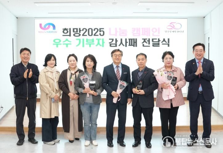 불탑뉴스신문사 송행임 기자 | 부산 남구는 지난 25일 희망2025 나눔 캠페인 우수 기부자를 대상으로 감사패 전달식을 진행했다.