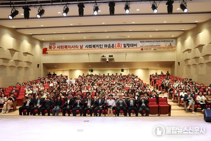 불탑뉴스신문사 송행임 기자 | 부산 북구는 지난 14일 북구문화예술회관에서 지역 내 사회복지종사자 300여 명이 참석한 가운데 ‘2025 북구 사회복지인 마음온(溫) 힐링 행사’를 성황리에 개최했다고 밝혔다.