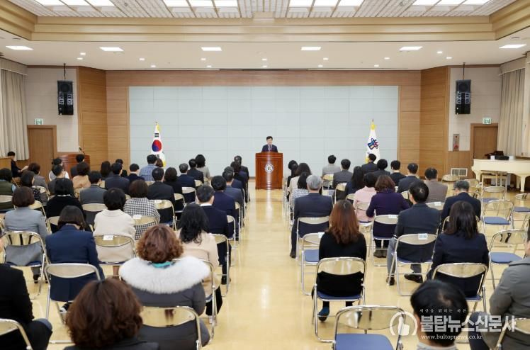 불탑뉴스신문사 차복원 기자 | 윤건영 충청북도교육감이 2일 오전, 화합관에서 12월 월례조회를 개최했다.