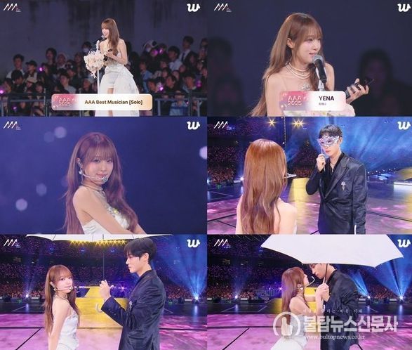 불탑뉴스신문사 한민석 기자 | 가수 최예나(YENA)가 'AAA' 베스트 뮤지션 상을 수상, 추영우와 설렘 퍼포먼스로 존재감을 드러냈다.