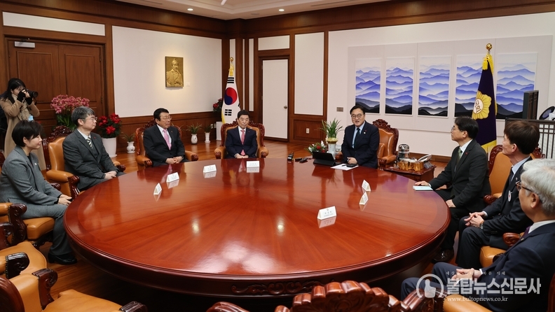 ▲우원식 국회의장이 23일(화) 오후 의장집무실에서 사회복지공동모금회, 대한결핵협회, 대한적십자사 등 기부·나눔단체를 국회에 초청해 성금을 전달하고 대화를 나누고 있다.(사진=국회사무처 사진팀)