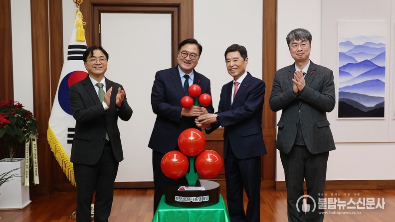 우원식 국회의장은 23일(화) 오후 의장집무실에서 사회복지공동모금회, 대한결핵협회, 대한적십자사 등 기부·나눔단체를 국회에 초청해 성금을 전달했다.