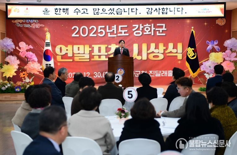 불탑뉴스신문사 차복원 기자 | 강화군은 30일 한 해 군정 발전에 기여한 민간 유공자와 공무원 유공자를 위한 ‘2025년도 연말 표창 수여식’을 개최했다.