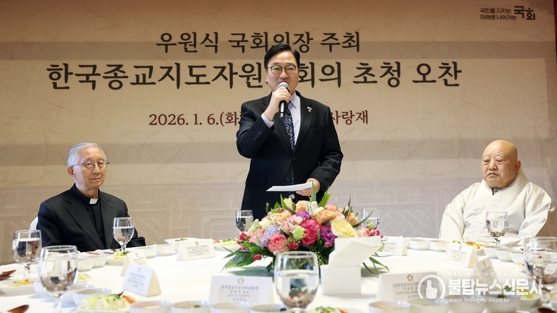 우 의장은 인사말을 통해 지난 시기 국가적 혼란 상황에서 종교계가 보여준 역할을 높이 평가했다. 그는 "재작년 비상계엄 사태 당시, 헌법 질서를 지키고 민주주의를 회복하는 데 있어 원로들께서 든든한 버팀목이 되어주셨다"며 깊은 감사의 뜻을 표했다.