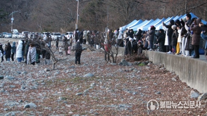다소 쌀쌀하고 차가운 겨울 날씨 속에서도 떠오르는 새해 첫 해를 바라보며 탄성을 터뜨리는 관광객들과 그 순간을 담으려는 주민들로 물건항 바닷가는 이른 새벽부터 북새통을 이뤘다.