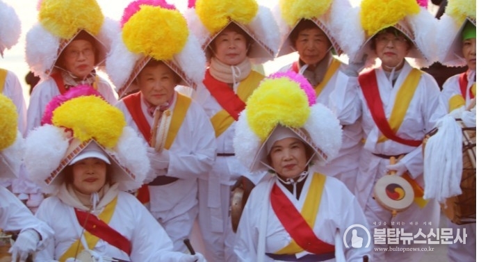 ▲물건마을 부녀회원들의 새해맞이 풍악놀이(사진출처-불탑뉴스)
