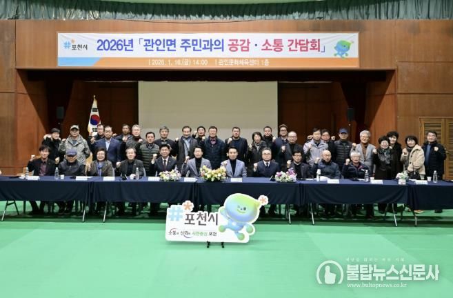 불탑뉴스신문사 차복원 기자 | 포천시는 지난 16일 영북면과 관인면에서 ‘2026년 주민과의 공감·소통 간담회’를 개최해 주민들과 직접 만나 지역 현안과 발전 방향에 대해 소통하는 시간을 가졌다.