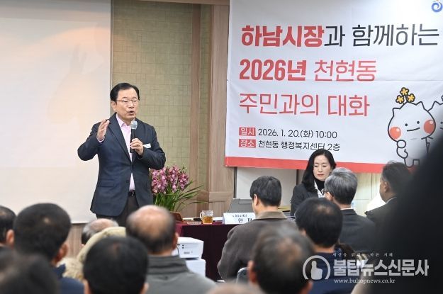 불탑뉴스신문사 차복원 기자 | 이현재 하남시장은 20일 감일동 행정복지센터에서 열린 ‘주민과의 대화’에서 “방아다리길 연결도로 개통과 연계한 버스 노선 개편 및 생활 SOC 확충을 통해 감일신도시 주민들의 정주 여건을 개선하겠다”라고 밝혔다.