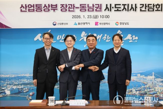 불탑뉴스신문사 송행임 기자 | 경상남도는 23일 울산시청에서 열린 산업통상부와 동남권 시·도지사 간담회에 참석해 5극3특 성장엔진 추진현황과 향후 계획을 공유하고, 지역산업 현안에 대해 논의했다고 밝혔다.
