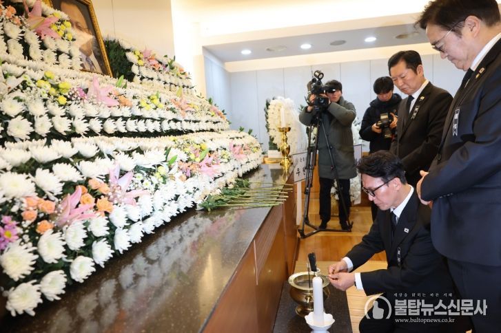 불탑뉴스신문사 차복원 기자 | 김민석 국무총리가 27일 종로구 서울대학교병원 장례식장에서 故 이해찬 민주평통 수석부의장의 빈소를 조문하고 있다.