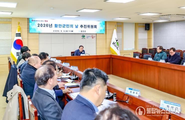 불탑뉴스신문사 차복원 기자 | 함안군은 2026년 함안군민의 날 행사를 성공적으로 개최하기 위해 지난 4일 군청 별관 3층 중회의실에서 조근제 함안군수를 위원장으로 한 ‘2026년 함안군민의 날 추진위원회’ 회의를 열었다고 밝혔다.