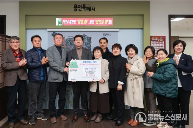 오지석 한국후계농업경인인 용인시연합회장과 허인순 한국여성농업인 용인시연합회장은 “적은 금액이지만 어려운 이웃에게 따뜻한 온기로 전해지길 바라는 마음을 담아 회원들이 십시일반 마음을 모았으니 꼭 필요한 곳에 써주길 바란다”고 말했다.