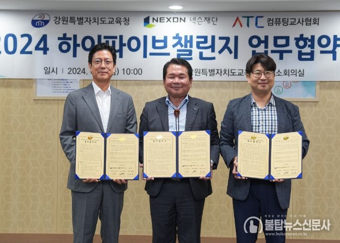 불탑뉴스신문사 차복원 기자 | 강원특별자치도교육청은 넥슨재단, 컴퓨팅교사협회(ATC)와 9일 ‘하이파이브 챌린지(High-5ive Challenge)’ 업무협약을 체결했다.