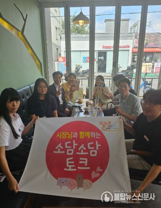 불탑뉴스신문사 송행임 기자 | 안병구 밀양시장은 직원의 의견(소리)를 청취하고(담고), 시정철학을 공유하는 소통 공감의 기회를 마련하고자 지난 2일 9급 직원 7명과 소담소담 토크를 진행했다.