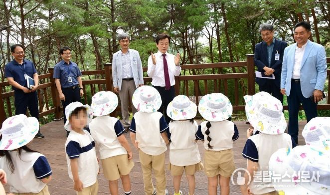 불탑뉴스신문사 송행임 기자 | 조규일 진주시장은 3일 진양호 꿈키움동산 일원에 쾌적한 숲 산책로를 만들고 안전한 숲 체험 공간을 조성하기 위해 추진 중인 ‘꿈키움동산 주변 산책로 설치공사’현장을 점검하고 ‘하모 유아숲체험원 조성사업’ 완료 현장을 살펴보았다.