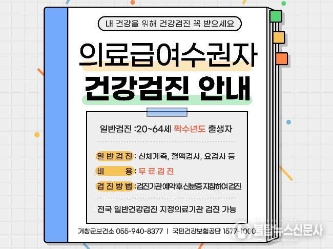 불탑뉴스신문사 송행임 기자 | 거창군은 의료급여수급권자가 건강한 생활을 할 수 있도록 돕고자 건강검진비를 연중 지원하고 있다.
