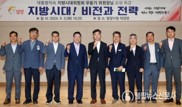 불탑뉴스신문사 송행임 기자 | 밀양시는 3일 시청 대강당에서 안병구 시장과 직원 300여 명이 참석한 가운데 대통령 직속 지방시대위원회 우동기 위원장을 초청해‘지방시대 비전과 전략’이라는 주제로 특강을 진행했다고 밝혔다.