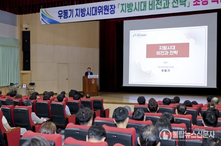 불탑뉴스신문사 송행임 기자 | 합천군은 4일 합천군종합사회복지관 대강당에서 김윤철 군수를 비롯한 공직자 250여 명이 참석한 가운데, 대통령 직속 지방시대위원회 우동기 위원장을 초청하여 ‘지방시대 비전과 전략’을 주제로 한 특별강연을 개최했다.