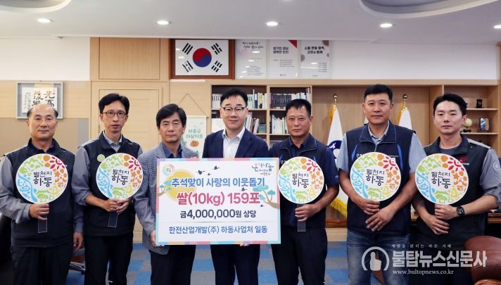 불탑뉴스신문사 송행임 기자 | 한전산업개발(주) 하동사업처에서 지난 4일 추석을 맞아 관내 어려운 이웃에게 400만 원 상당의 쌀 10㎏들이 159포를 전달했다.