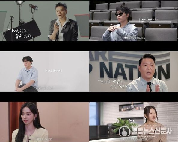 5일 KBS에 따르면 가수 성시경, 싸이, 수지, AKMU(악뮤) 이찬혁, 에스파 카리나가 KBS 대국민 초대형 공연 프로젝트 'KBS 대기획 - 데뷔 30주년 특집 딴따라 JYP'(이하 '딴따라 JYP')의 영상에 출연해 박진영을 지원 사격한다.
