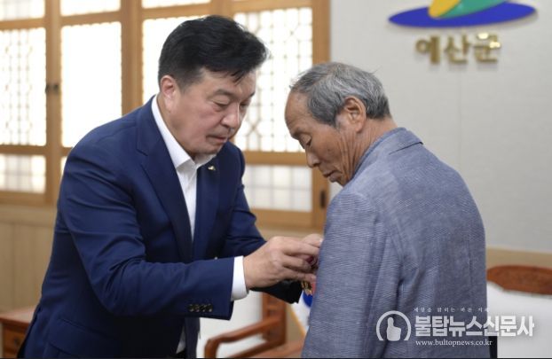 불탑뉴스신문사 한기석 기자 | 예산군은 지난 23일 6·25전쟁에 참전해 발군의 무공을 세운 故 양태은 일병 유가족에게 화랑무공훈장과 훈장증을 전수했다.