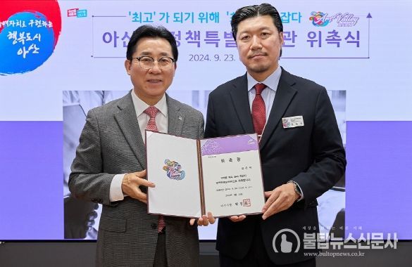 불탑뉴스신문사 한기석 기자 | 아산시는 체육 및 교통 분야의 정책 자문 강화를 위해 김은석 아시아카누연맹(ACC) 사무총장과 유소영 한국철도기술연구원 교통물류체계연구실장을 정책특별보좌관으로 위촉했다고 24일 밝혔다.