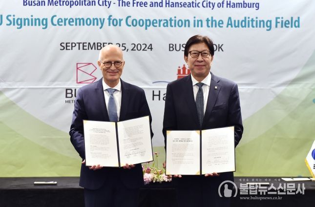 불탑뉴스신문사 송행임 기자 | 부산시는 오늘(25일) 오전 11시 20분 해운대 파라다이스호텔에서 함부르크시와 '부산시-함부르크시 감사 분야 협력에 관한 업무협약(MOU)'을 체결한다고 밝혔다.