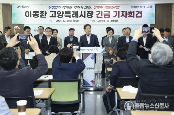 불탑뉴스신문사 차복원 기자 | 이동환 고양특례시장은 21일, 긴급 기자회견을 열어 지난 5월 고양시와 시의회 간 약속한 ‘상생협약’의 이행을 강력히 촉구했다.