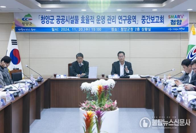 불탑뉴스신문사 차복원 기자 | 청양군은 지난 20일 군청 상황실에서 용역사, 자문위원, 부서장 등 20여 명이 참여한 가운데 ‘2024년 청양군 공공시설물 효율적 운영관리 연구용역 보고회’를 개최했다.
