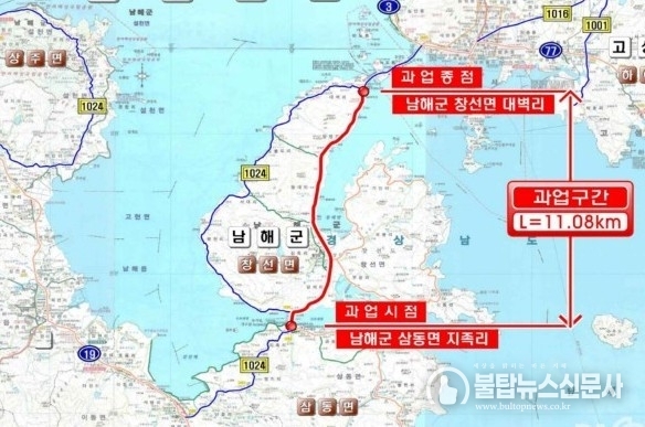 남해 삼동~창선 국도 3호선 확장공사 위치도.(부산지방국토관리청 제공)