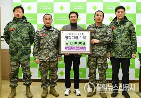 조현일 이사장은 “경산시 행사에서 시민들의 안전을 위해 앞장서 주시는 해병전우회 경산시지회에 깊이 감사드린다”며 “미래 세대를 위한 장학사업을 통해 기탁해 주신 따뜻한 마음을 학생들에게 온전히 전달하겠다”고 전했다.