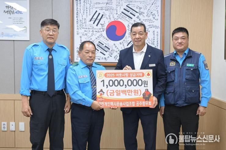 불탑뉴스신문사 차복원 기자 | 공주시는 지난 17일 대전개인택시운송사업조합 공주향우회가 추석 명절을 맞아 어려운 이웃을 위해 성금 100만 원을 기탁했다고 밝혔다.