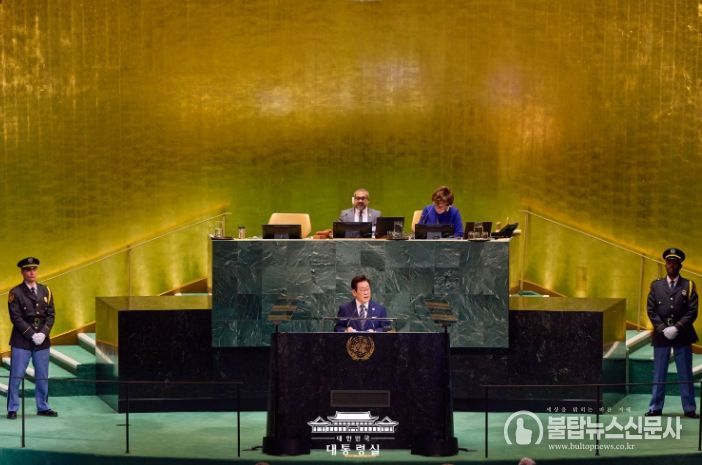 불탑뉴스신문사 차복원 기자 | 이재명 대통령이 23일(현지시간) 최대 다자외교 무대인 제80차 유엔총회 기조연설을 통해 이재명정부의 한반도 정책 구상이 담긴 'E.N.D 이니셔티브'를 제시했다.