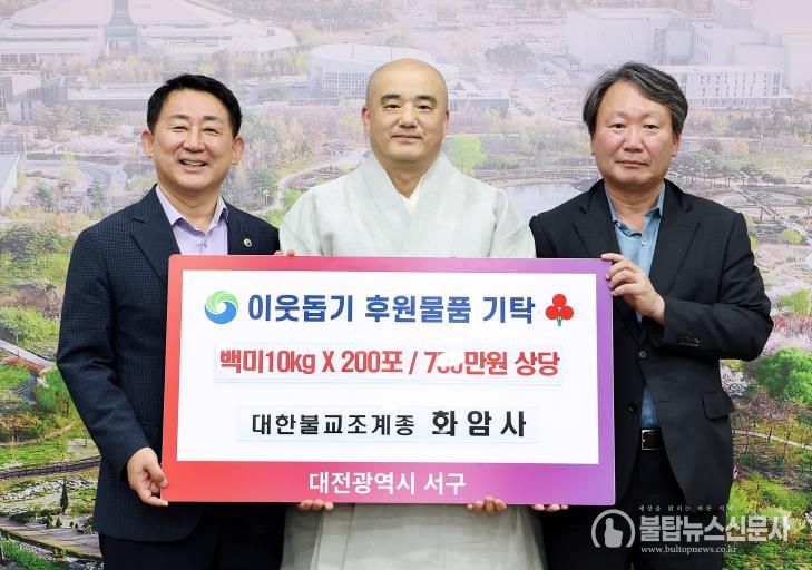 불탑뉴스신문사 차복원 기자 | 대전 서구는 지난 30일 화암사로부터 백미 10kg 200포(750만 원 상당)를 기탁받았다고 1일 전했다.