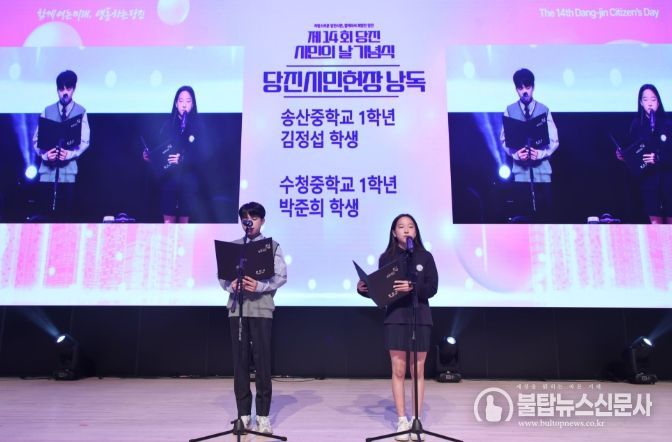 특히 시민헌장 낭독은 제14회를 맞은 해의 의미를 담아, 중학교 1학년 학생들이 참여해 미래 세대의 목소리로 당진의 희망을 전했다.