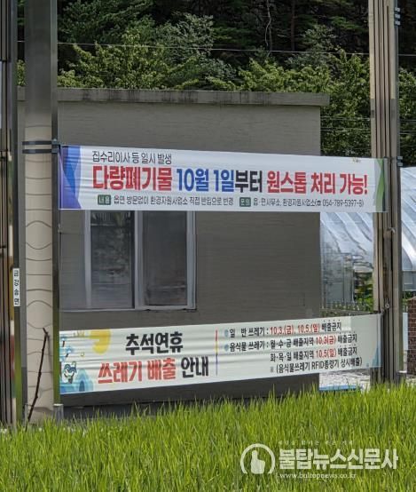 불탑뉴스신문사 차복원 기자 | 울진군은 추석 명절 군민들이 쾌적한 환경에서 쓰레기 걱정 없는 연휴를 보낼 수 있도록‘추석 연휴 쓰레기 관리대책’을 추진한다.