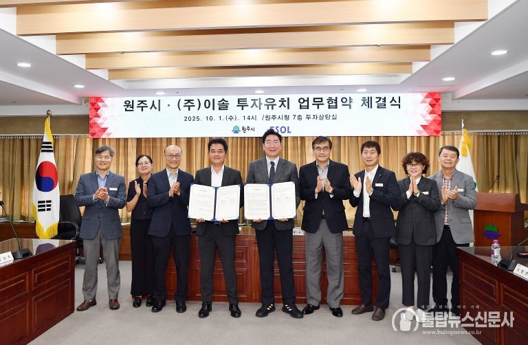 불탑뉴스신문사 차복원 기자 | 원주시는 10월 1일 오후 2시, 시청 7층 투자상담실에서 ㈜이솔(대표 김병국)과 투자유치 협약(MOU)을 체결했다. 이번 협약은 총 505억 원 규모의 투자로, 부론일반산업단지에 소형 방사광가속기와 첨단 EUV 반도체 검사장비 연구·생산시설을 구축하는 사업이다. EUV(Extreme Ultra-Violet)는 반도체 초미세 공정(7nm 이하)에 필수적인 광원이다.