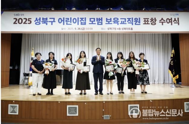 불탑뉴스신문사 차복원 기자 | 서울 성북구가 지난 26일 관내 어린이집에서 장기간 근무하며 보육서비스 향상과 우수 보육프로그램 개발, 보육환경 개선에 기여한 모범 보육교직원에게 표창을 수여했다. 올해 수상자는 원장, 보육교사, 조리사 등 총 77명으로, 각자의 자리에서 아이들의 안전과 건강, 교육의 질 향상에 힘써온 공로를 인정받았다.