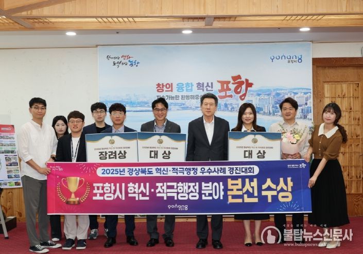 불탑뉴스신문사 차복원 기자 | 포항시는 지난 26일 경상북도가 주관한 ‘2025년 경상북도 혁신 및 적극행정 우수사례 경진대회’에서 혁신·적극행정 분야 대상 2관왕과 혁신분야 장려상을 동시에 거머쥐었다.