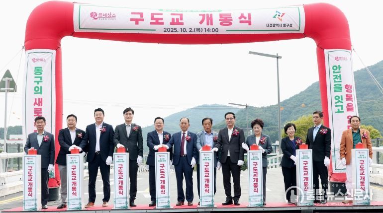 이날 개통식에는 박희조 동구청장, 오관영 동구의회의장, 이장우 대전시장을 비롯한 주요 내빈과 지역 기관·단체장, 주민 등 200여 명이 참석해 새롭게 단장한 구도교의 개통을 함께 축하했다.