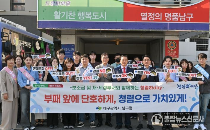 불탑뉴스신문사 차복원 기자 | 대구 남구는 지난 10월 1일 보조금 및 재·세정 부서 합동 청렴 캠페인을 실시했다고 밝혔다.